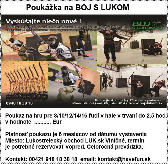 Okrem tejto hry boj s lukom ponúkame aj iné zážitky spojené s lukostreľbou a streľbou z kuší, ktoré je možné zakúpiť formou poukážky. Prehľad ostatných poukážok nájdete na www.strelba.sk